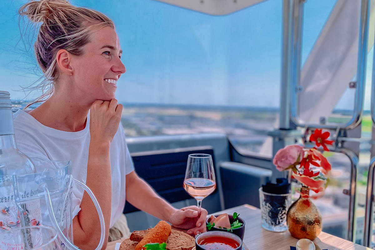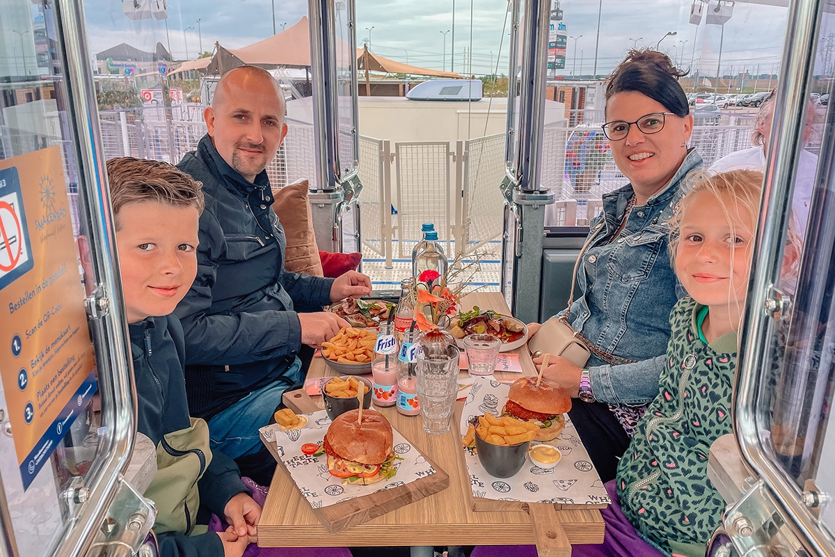 Genieten van een 2-gangen diner (1,5 uur) met panoramisch uitzicht, op 70 meter hoogte? Dat kan in het Smakenrad in Goes; het grootste transportabele reuzenrad van de wereld!