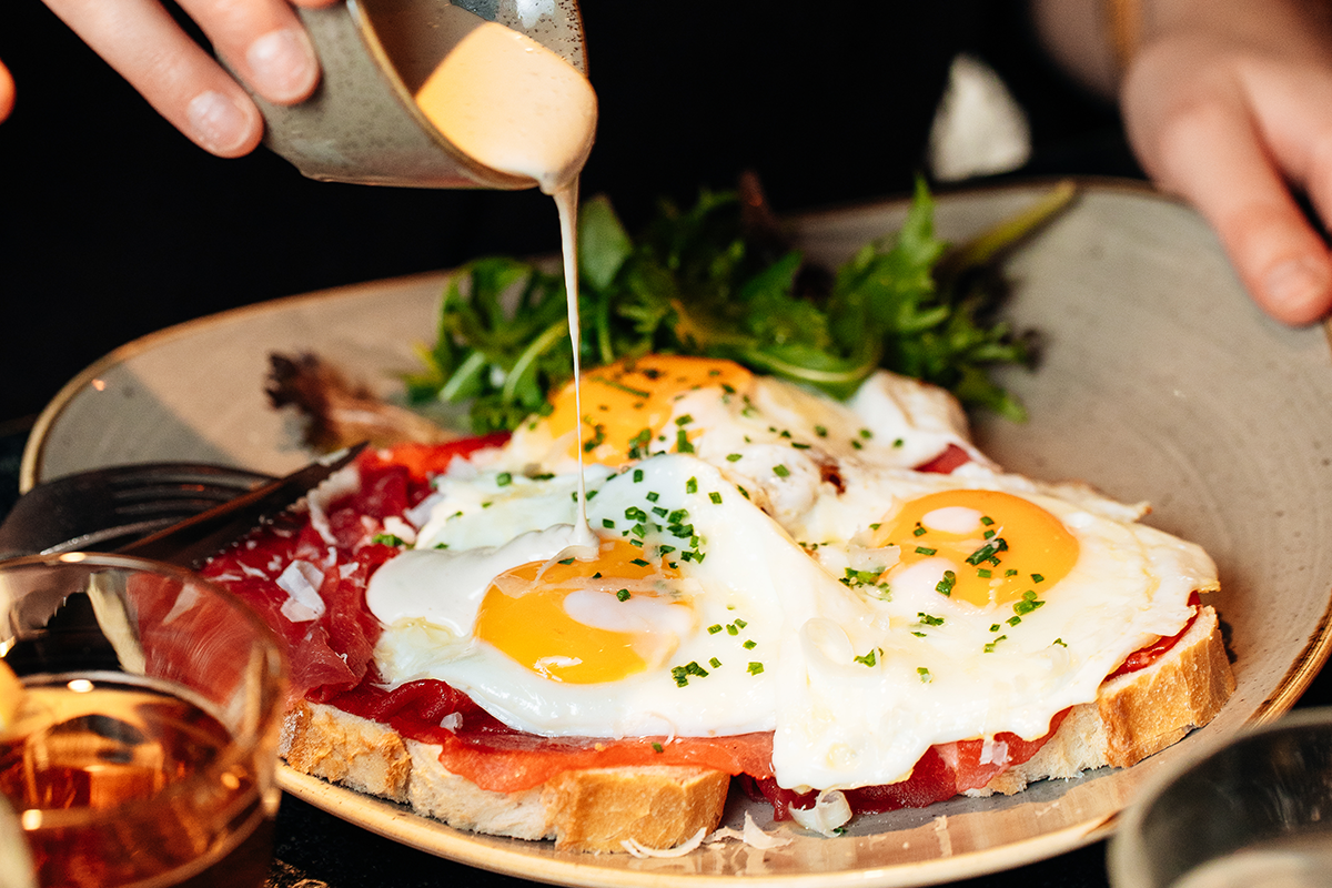 molenaarsbrood | carpaccio | grana padano | drie gebakken eitjes | truffelmayoFlorentine egg benedict