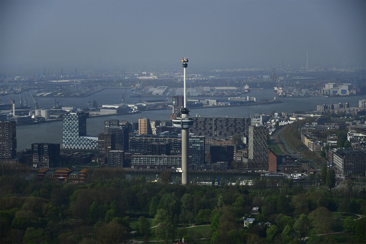 - Uitzicht over Rotterdam met z’n water, bruggen en herkenbare gebouwen