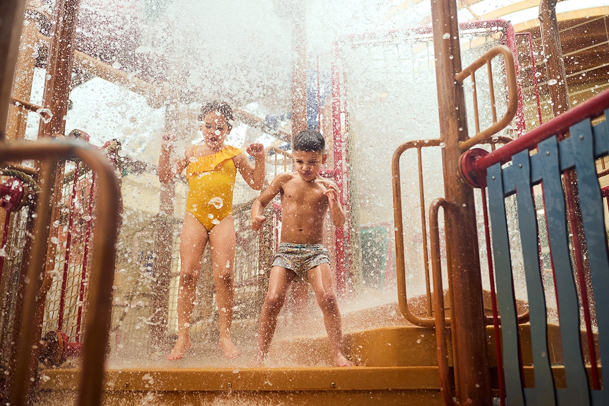 - Trotseer de golven in het golfslagbad, ontdek de verschillende glijbanen en kom tot rust in een warm bubbelbad