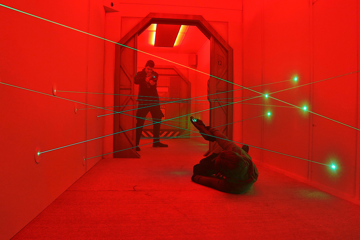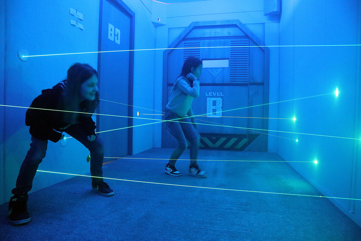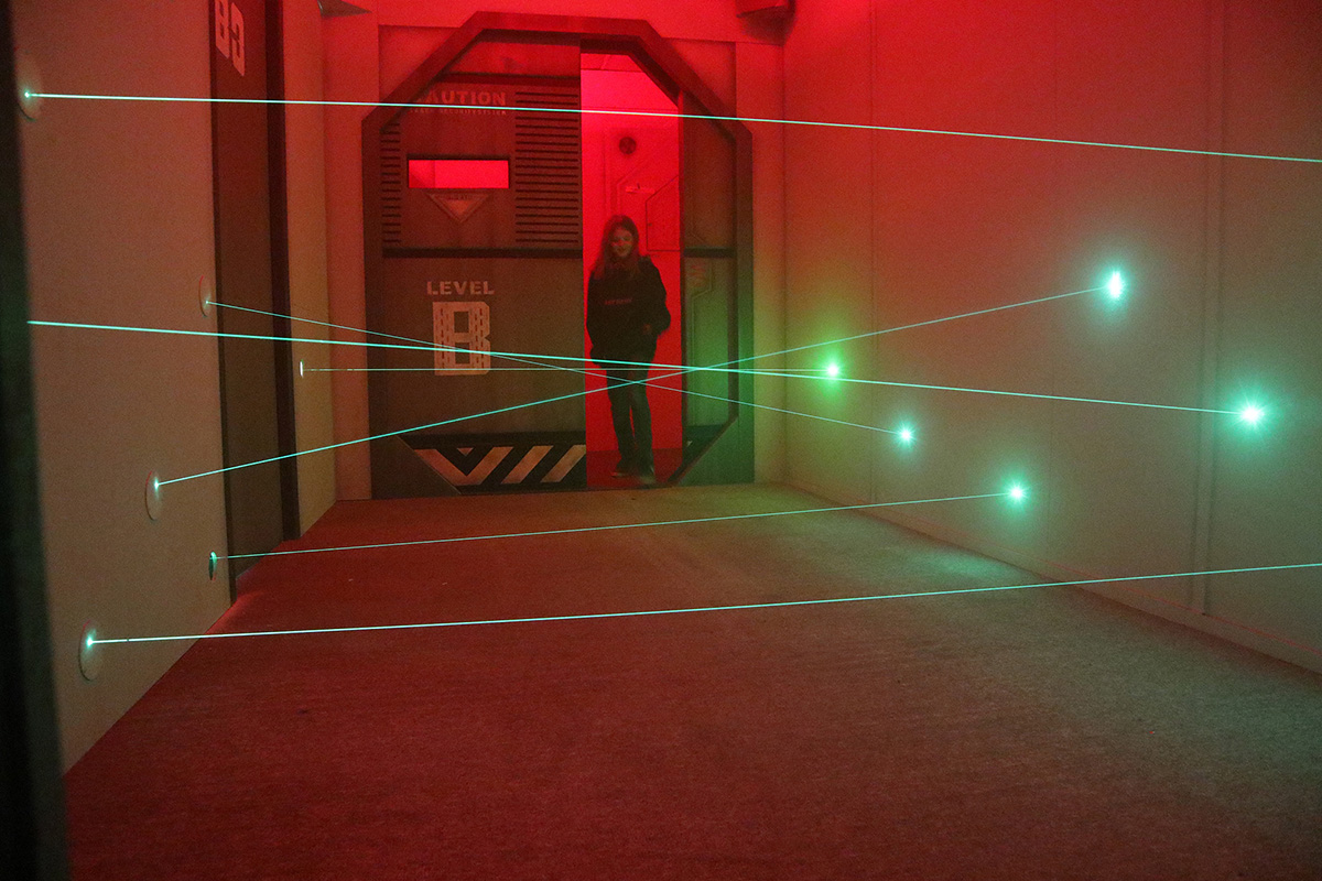 - In de controle ruimte kun je jouw teamgenoten in de gaten houden, terwijl zij de laser maze betreden