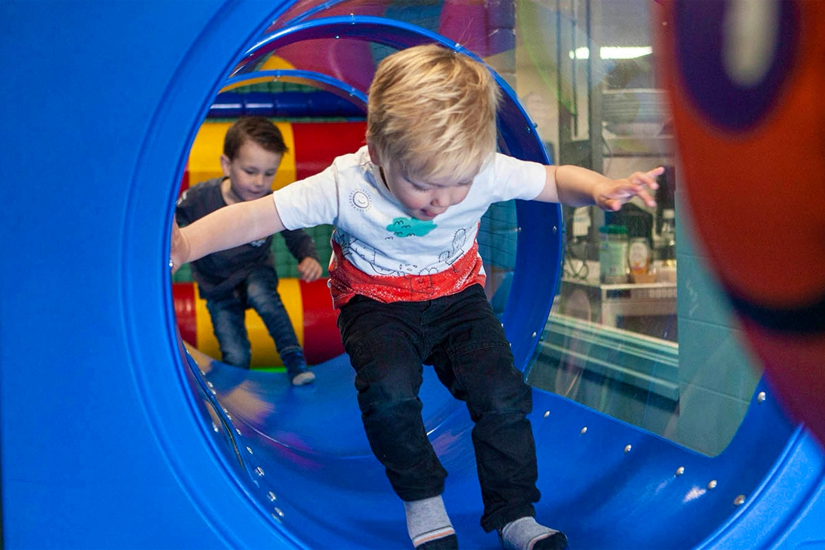 In de overdekte speeltuin in het paviljoen kunnen kleine en grote kinderen eindeloos klimmen en klauteren. Er is een klim- en klauterstrand met hoge strandhuisjes zijn verbonden met allerlei bruggen en touwconstructies! Daarnaast vind je er een uitdagende powertower, waar tussen de elastieken door moet klimmen, verschillende klimstructuren, een hoge glijbaan, wokkelglijbaan, botsauto's, reuze bouwblokken en een klimvulkaan. Even bijkomen van alle klimmen en klauteren? Dat kan in de Mini Mundi bios. Hier worden continue kinderfilms afgespeeld.