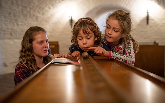 Je kunt er terecht voor leuke speurtochten, uitdagende spelletjes spelen en spijs en drank in de gezellige kelderkeuken. Of speel samen de spellen uit de tijd van ‘ridder Hoen’.
