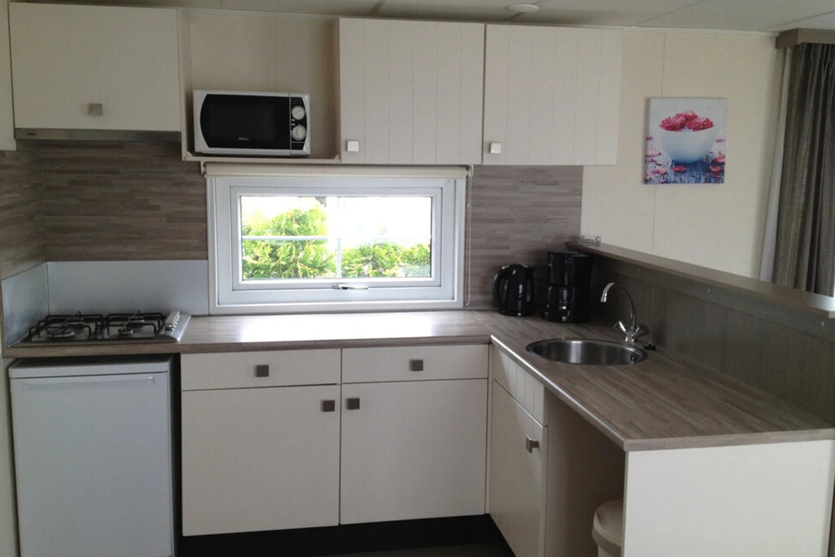 Het chalet Comfort 6 is een ruim en comfortabel chalet dat van alle gemakken is voorzien. De vrijstaande woning is gelijkvloers en geschikt voor 6 personen. In de woonkamer tref je een zithoek met televisie, een aparte eethoek en een keuken met onder andere een magnetron, vaatwasser en filter koffiezetapparaat. Het chalet heeft 3 slaapkamers, waarvan 2 met 2 eenpersoonsbedden en 1 met een tweepersoonsbed. De badkamers is uitgerust met een douchecabine, toilet en wastafel. In de vind je een terras met tuinmeubilair. Je kunt 1 auto parkeren bij Comfort 6 en je kunt gratis verbinding maken met de Wi-Fi. Let op: Het is niet mogelijk om een campingbedje in de slaapkamer te plaatsen.