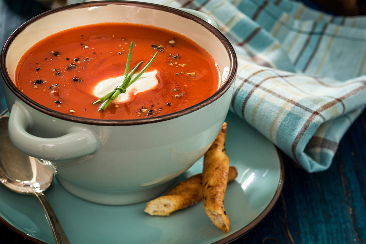 - Start met een tomatensoep of pittige uiensoep