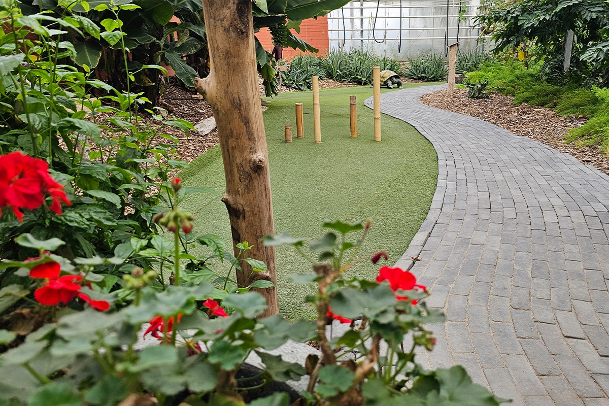 Een potje minigolfen tussen de exotische planten en vijvers vol koikarpers? Het kan bij Indoor Adventure Minigolf! Speel 15 uitdagende holes van 8 tot maar liefst 15 meter lang. Uniek in Nederland, want het is de enige kunstgras minigolfbaan van deze omvang die gevestigd is in een tropische tuin! Verwacht geen standaard minigolfbaan, maar een écht golfterrein in het klein.