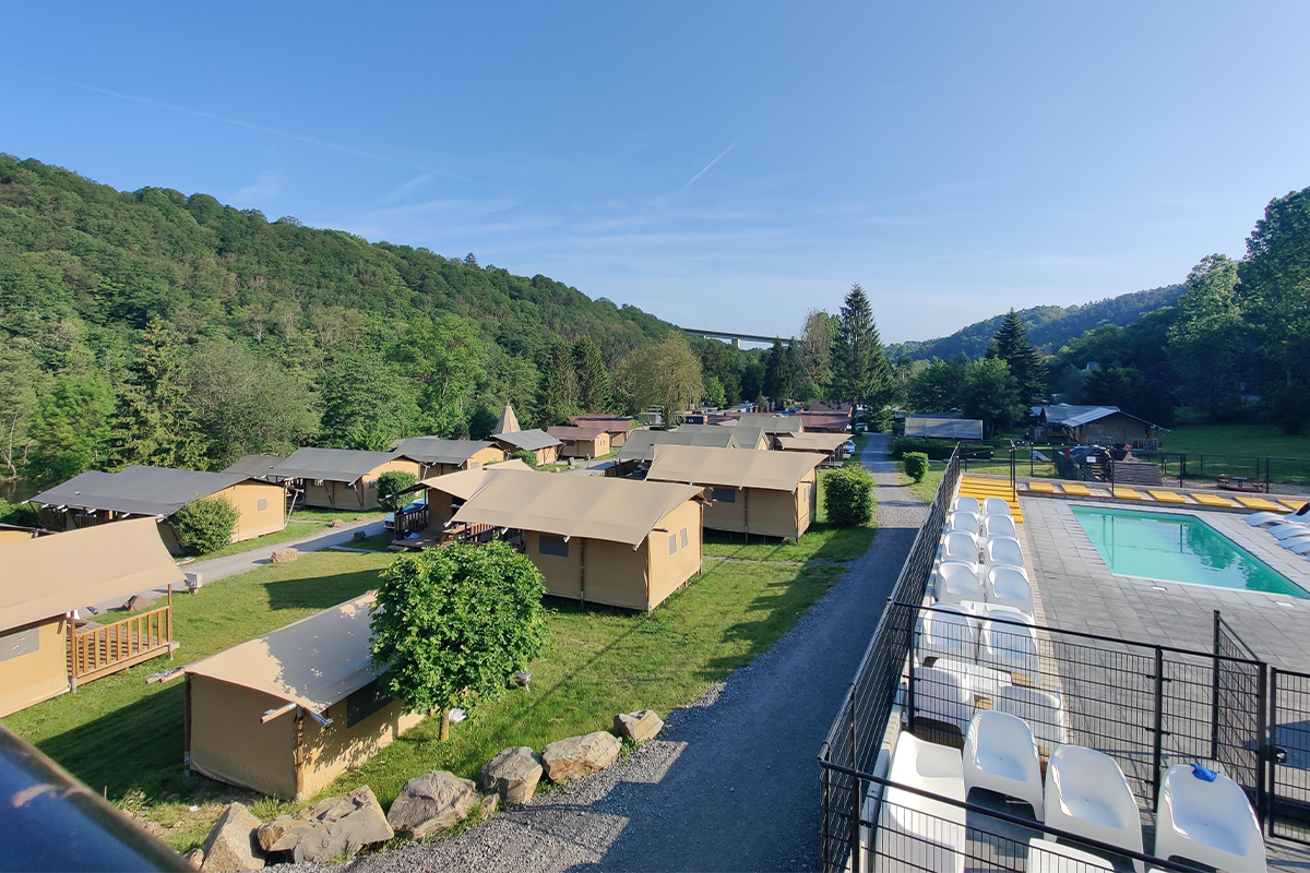 In de Belgische Ardennen, in het dorpje Remouchamps aan de oever van de rivier de Amblève, ligt Camping Olympia. Een gezellige camping met gloednieuwe Safaritenten die verspreid op de camping staan. Er zijn maarliefst twee zwembaden (heerlijk verwarmd) en er staan fijne bankjes, stoelen en vele ligbedden. In de Poolbar zijn cocktails, drankjes, slushpuppy's en snacks verkrijgbaar en klinkt ieder uur een nieuw ritme uit de muziekboxen. Boven in de bar/ restaurant bestel je een snack, frites, tosti of koud Belgisch biertje. De camping is autoluw (er is voor iedere boeking één parkeerplek op de centrale parkeerplaats).